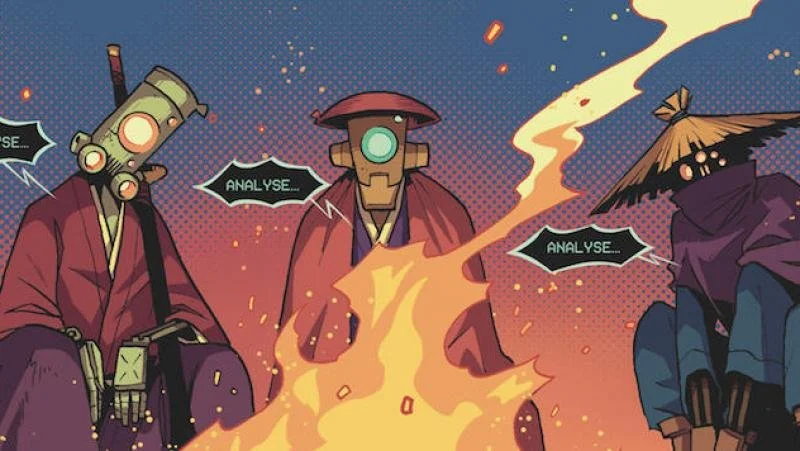 En créant Yojimbot j’ai beaucoup pensé au manga Lone wolf & cub, qui raconte l’histoire d’un samouraï renégat qui s’occupe de son fils qu’il aurait dû tuer pour pouvoir fuir. Il préfère s’en occuper et le défendre, j’ai plus pensé aux films de samouraïs qu’aux films de robots. En fait je ne me suis jamais vraiment transposé dans le futur, l’histoire est tout à fait actuelle, c’est des individus qui protègent un enfant.
