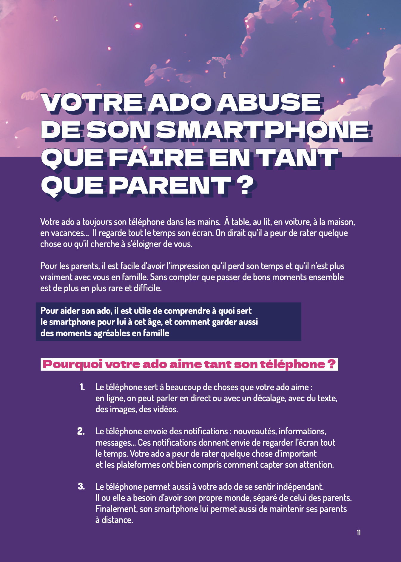 Ce guide change la donne. Il vous aide à accompagner concrètement les parents à partir de situations familiales réelles. L’objectif : leur donner des clés de compréhension et des petites actions simples à tester à la maison.